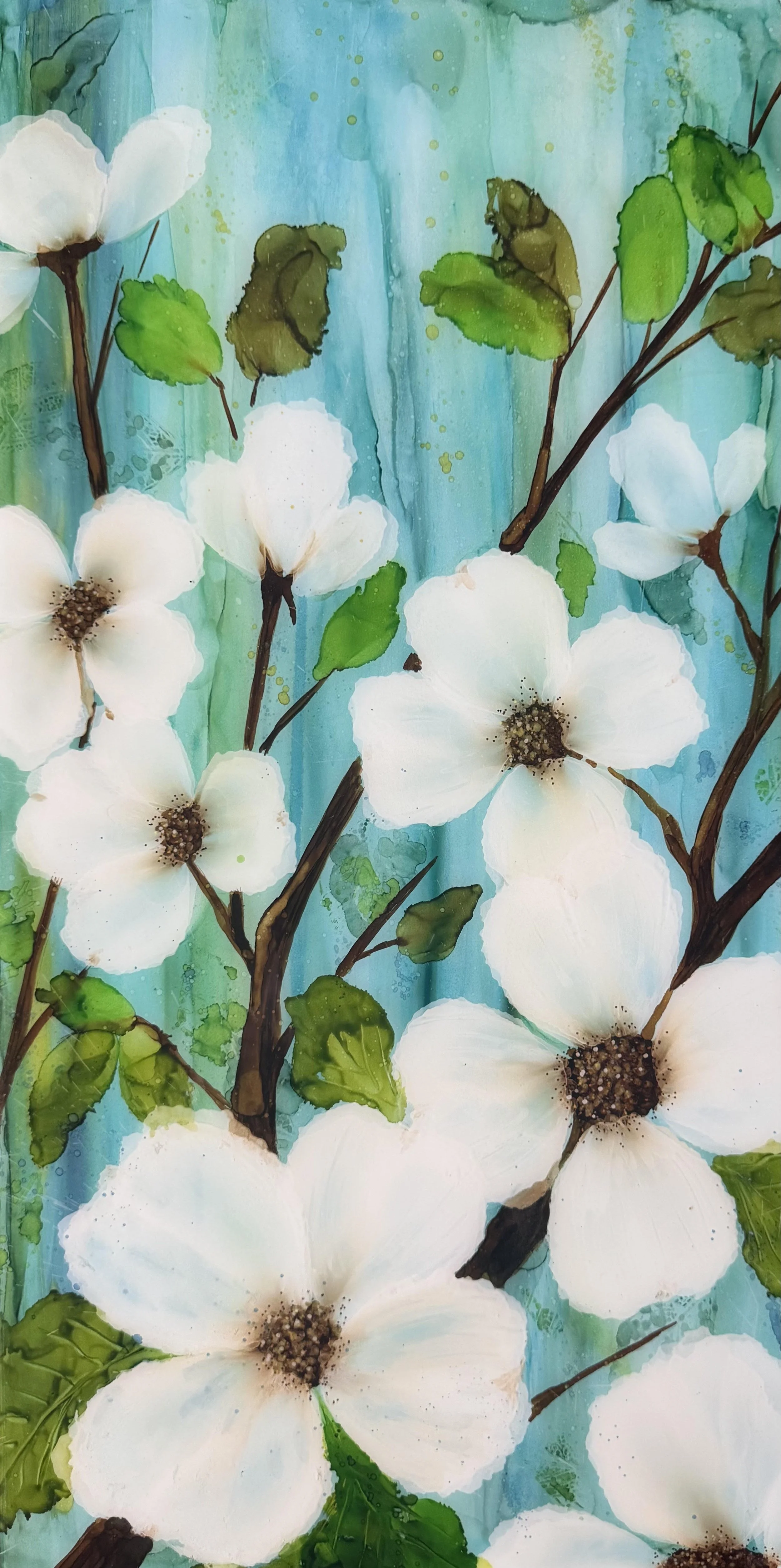 I’m Angie Bryant, an alcohol ink artist and surface pattern designer based in Upstate South Carolina. After years as an elementary art teacher, I returned to my own creative practice in 2018 and now focus on bold, expressive florals. I paint with alcohol inks and air tools—each bloom shaped by movement, instinct, and color. The results are layered, luminous, and one of a kind. Many of my designs also appear on functional items like coasters, trivets, and mugs. I print all of my products in-house, and recently received a project grant from the Metropolitan Arts Council to expand my home décor line. Whether I’m in the studio or teaching a workshop, my goal is simple: to make art that brings beauty to everyday life and reminds others it’s never too late to bloom.