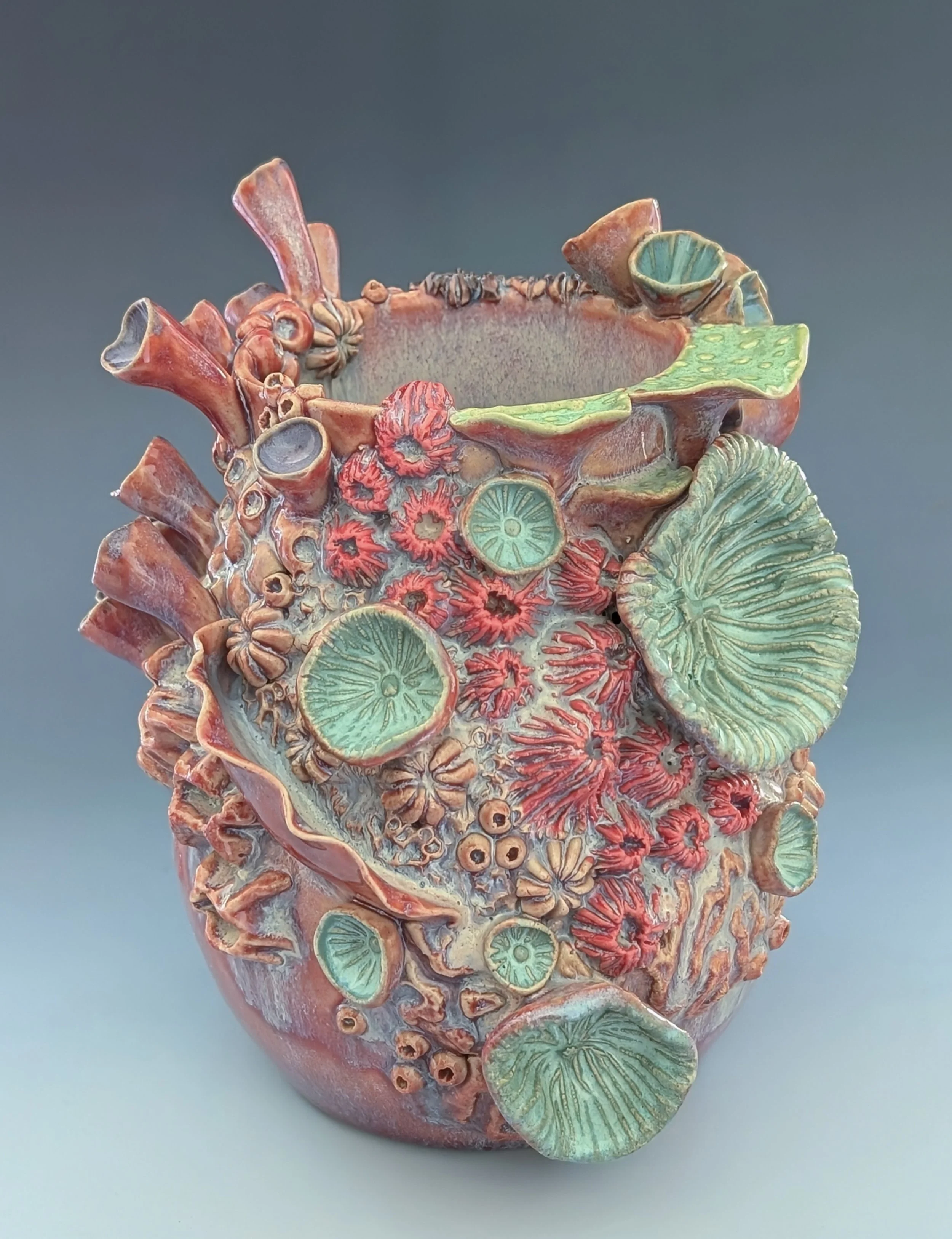 Caroline Clark is a mud witch, creating functional ceramic sculpture as Revisionist Studio in the woods of South Carolina. Drawing inspiration from the symbiotic systems of coral reefs and fungal networks, her work fosters a sense of playful wonder in everyday objects and is meant to be held and used.