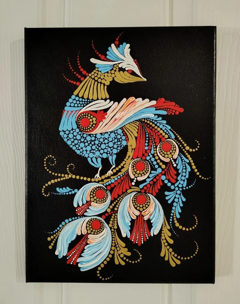 I have always had a creative streak, starting as a child sketching characters from the Sunday comics, and enjoying cross-stitch needlework and paper crafts as an adult. My recent interest in acrylic painting began by attending “paint parties” with friends. With no formal art education but wanting to learn more, I used online tutorials to teach myself dot art, palette knife work, fluid acrylics, one-stroke, and other acrylic techniques. I am most passionate about abstract designs, but also enjoy painting landscapes, scenes of nature, flora and fauna.
