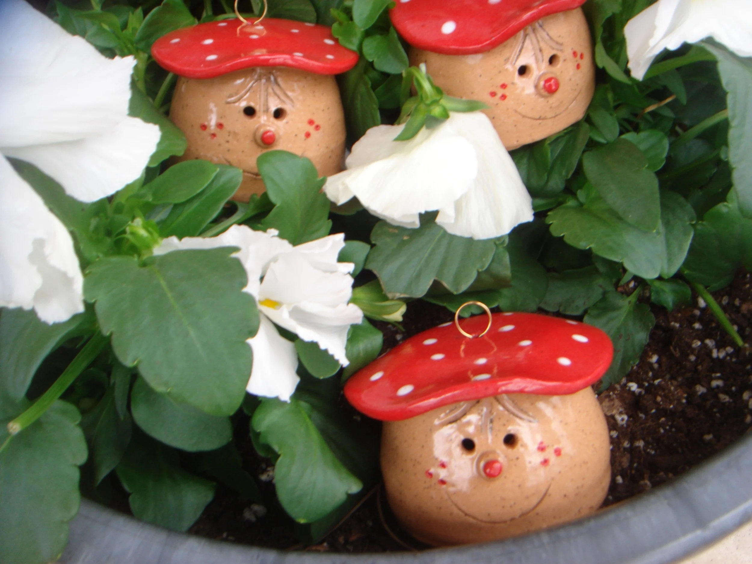 Susanne started working with clay about 16 years ago. Each piece that is made has its own unique qualities. Her love of gardening is a strong element when creating her work. She is best know for her whimsical toad houses.