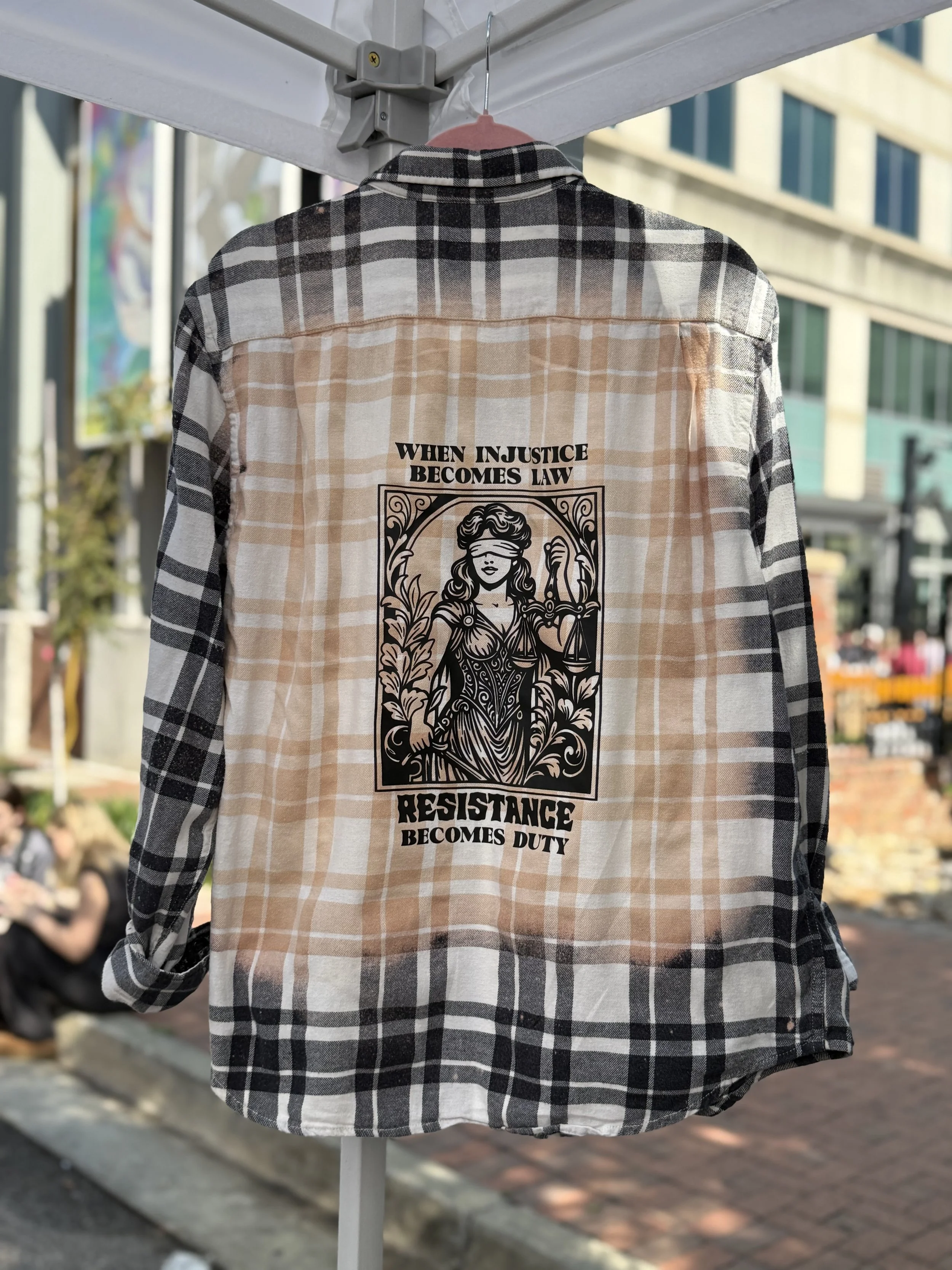 maneater apparel is a woman owned and operated small business creating sustainable, one-of-a-kind and hand-bleached feminist statement pieces. our upcycled flannels, deconstructed denim pieces and unisex t-shirts are available in inclusive sizing up to 4xl. we also offer empowering accessories including tote bags, tumblers, mugs, stickers, bumper stickers and more!