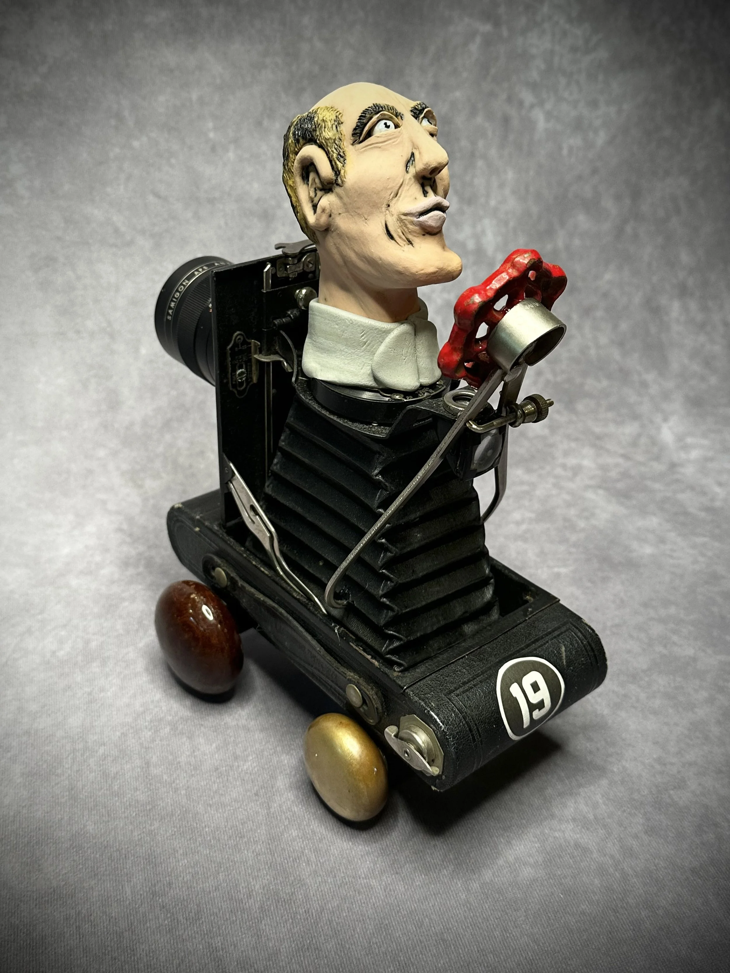 He finds inspiration in listening to people and observing what they say or do. Often times when he hears a word or a phrase, he visualizes it in his mind’s eye and has to create a 3D image of it. He also sees discarded "junk" and wonders what it could be if it had a second chance to reach it’s full potential. Once an idea is realized, he grabs a chunk of clay and starts to create.