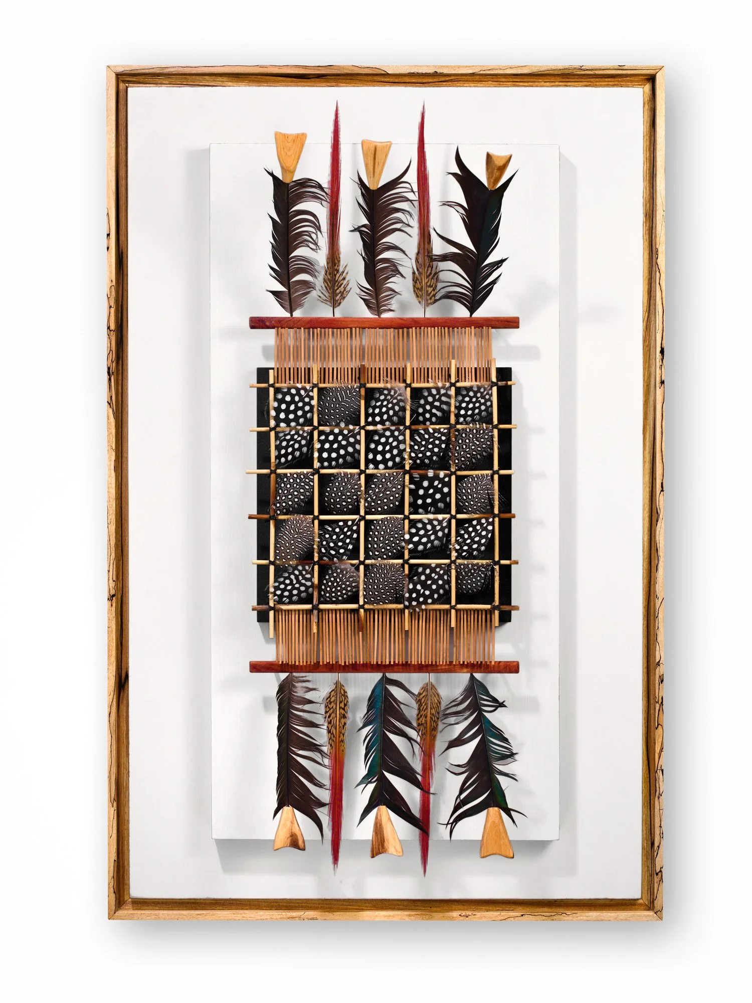 My work is unique due to the natural materials I incorporate to weave a story I wish to tell. Typically in my mixed media I use pastel, acrylic, gauche, handmade paper, and natural materials including birch twigs and bark, feathers, sinew, twine, copper, leather, bone, all to tell the story. I also always include a hand crafted frame I consider part of the overall effect of the art using either maple, curly or spalted maple, cherry or spalted cherry.