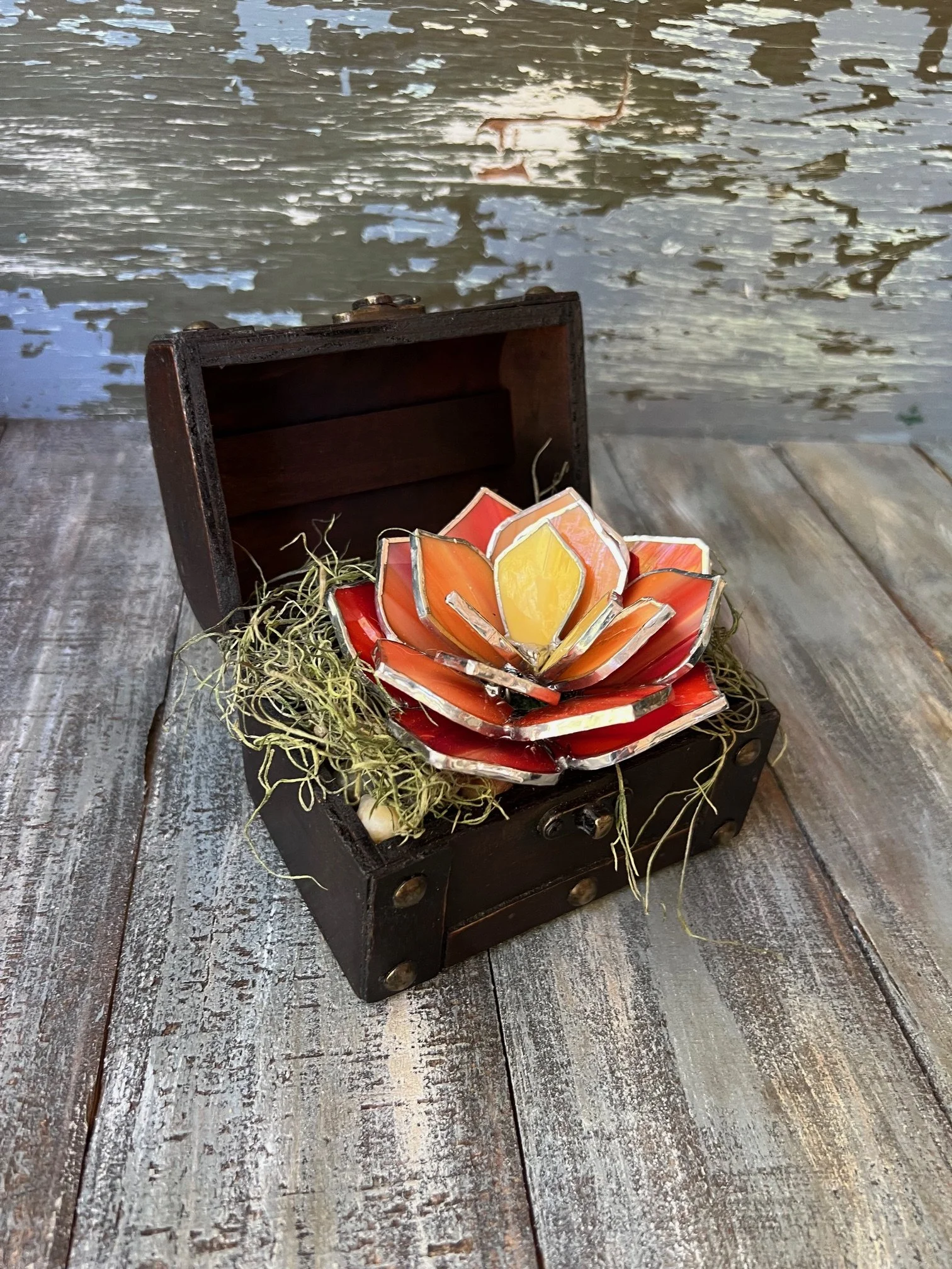 I am a local artist who enjoys creating handcrafted stained glass decor and unique wire-wrapped jewelry inspired by the elements and beauty of nature.